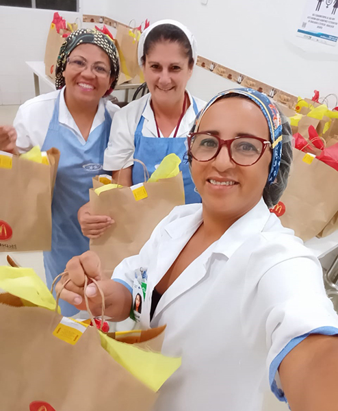 Já o McDonald’s doou refeições para os profissionais de saúde de 22 cidades brasileiras, beneficiando em Porto Alegre os trabalhadores do Hospital Cristo Redentor. Foram 180 sanduíches distribuídos no lanche noturno do hospital. Junto com a entrega os colaboradores da empresa responsáveis pelo preparo das refeições enviaram mensagens de apoio e agradecimento junto às entregas.