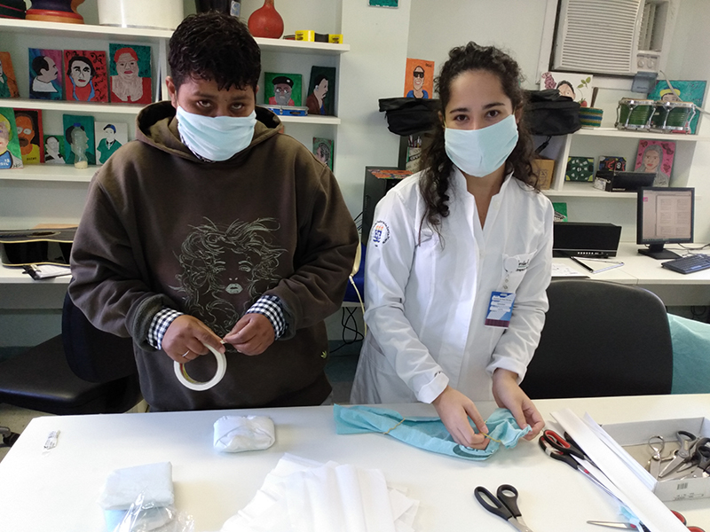 Coordenada pela terapeuta ocupacional Caroline Mendes, residente da Residência Multiprofissional em Saúde do Grupo Hospitalar Conceição, foi iniciada no CAPS AD III Passo a Passo uma oficina de produção de máscaras de proteção contra o Covid-19, conforme orientação técnica do Ministério de Saúde.