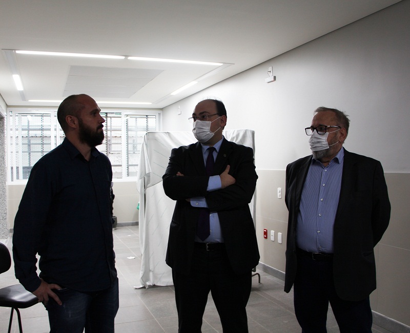 Os diretores do Grupo Hospitalar Conceição (GHC), Francisco Paz e Cláudio Oliveira, realizaram na tarde dessa segunda-feira, 11 de maio, uma vistoria na Torre de Ligação do GHC. A edificação começou a ser construída no início de fevereiro de 2018 e teve término em fevereiro de 2020. A Torre de Ligação tem como objetivo conectar os blocos A e B, melhorando o acesso do Centro de Hematologia e Oncologia às demais áreas do Hospital Conceição, como UTI e Bloco Cirúrgico, e melhorar a acessibilidade e a circulação vertical dos pacientes, funcionários, acompanhantes e portadores de necessidades especiais.