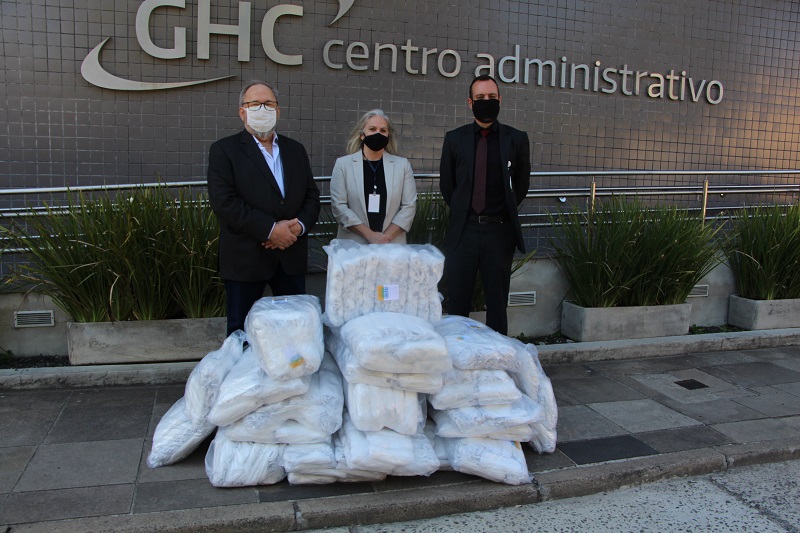 Estiveram presentes na entrega das máscaras o diretor-técnico do GHC, Francisco Paz, o gerente de Materiais, Anderson Grimaldi Petersen, e a diretora suplente da Sivergs, Silvia Gualdi.