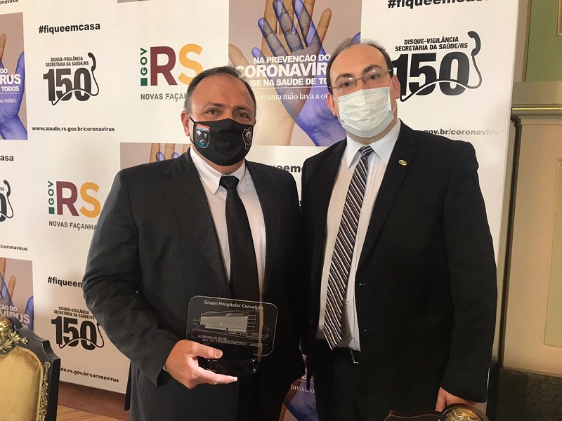 O diretor-presidente do Grupo Hospitalar Conceição, Cláudio Oliveira, esteve, na tarde desta terça-feira, 21 de julho, com o ministro da Saúde interino, Eduardo Pazuello. O encontro foi no Palácio Piratini, após reunião de Pazuello com o governador Eduardo Leite. Na ocasião, Cláudio Oliveira expôs ao ministro o trabalho do GHC de enfrentamento à pandemia. “Solicitamos auxílio de pessoal, especialmente médicos intensivistas, respiradores e medicamentos. E ele se colocou à disposição para auxiliar e sua equipe para apoiar as ações do GHC”, contou o diretor.