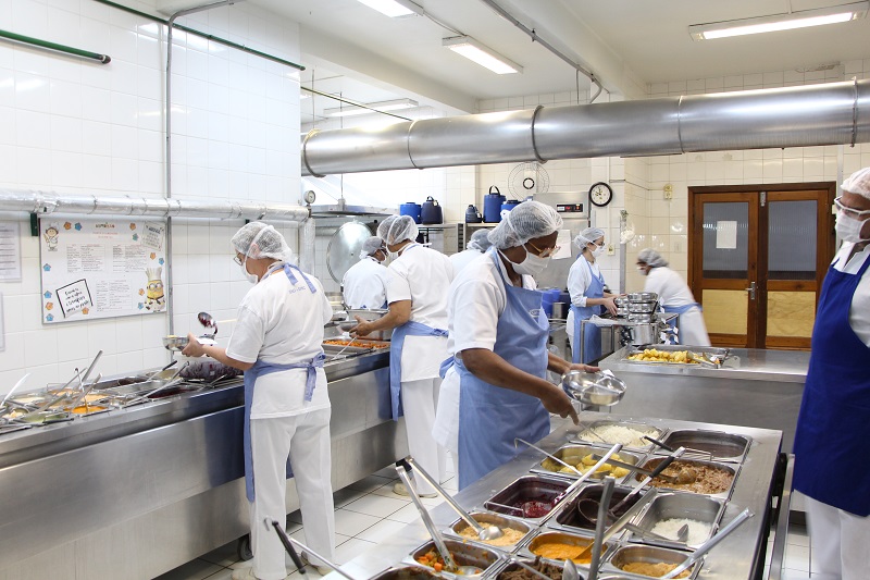 - Funcionários do Serviço de Nutrição servindo os alimentos e água/suco;