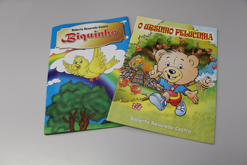 Os livros doados são "O Ursinho Pelucinha" e "Biquinho". De acordo com o autor, o primeiro, que contém figuras para colorir e pouco texto, é direcionado a crianças que estão se alfabetizando e o segundo, com textos maiores, é para crianças mais velhas.