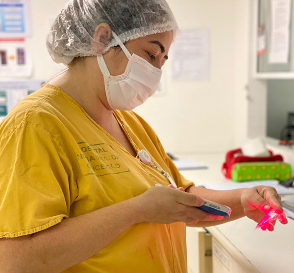 A unidade 3ºI1 atende a pacientes oncológicos e conta com cinco técnicos de enfermagem por turno. Responsável por estes profissionais, a enfermeira Alessandra Santin aponta que a checagem à beira do leito facilitou todo o processo de cuidado principalmente pela integração online com o sistema do GHC. “A medida alça o Conceição a ser um hospital mais moderno”, disse.