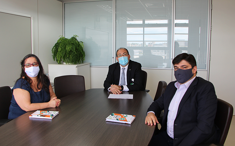 O diretor-presidente do Grupo Hospitalar Conceição, Cláudio Oliveira, recebeu na tarde desta quinta-feira, 7 de janeiro, a visita da nova presidente do Conselho Regional de Enfermagem do Rio Grande do Sul (Coren-RS), Rosângela Schneider, que assumiu a função esta semana. Rosângela estava acompanhada do presidente anterior da entidade, Daniel Menezes de Souza, que terminou o mandato e, como é funcionário do GHC, volta a exercer seu trabalho no Hospital Conceição.
