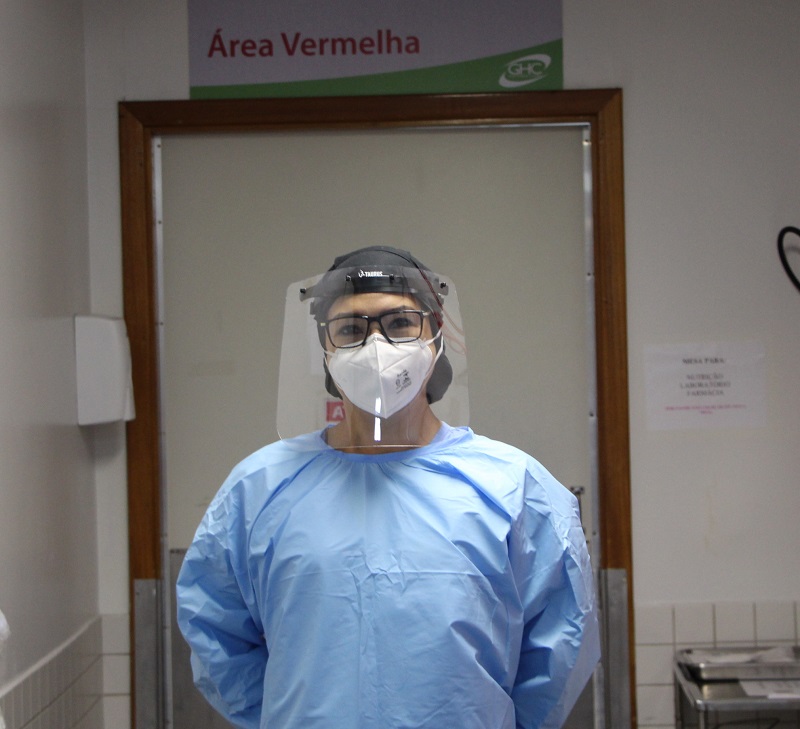 Regina tem 47 anos e trabalha na Emergência do Hospital Conceição (HNSC) há quase quatro anos. Mesmo com o momento difícil vivido no hospital devido ao crescimento do número de casos de coronavírus registrado nas últimas semanas, ela continua uma pessoa sorridente e animada. Com a maquiagem destacando o "sorriso nos olhos", procura passar força para os pacientes e colegas de profissão. "Por mais que isso aqui seja negativo, eu procuro pensar que a gente vai vencer esta fase. Eu penso que estou aqui porque essas pessoas precisam de mim e se eu não procurar um gás, uma força lá do fundo, como que eu vou passar pra eles algo mais forte. Eu tenho que ter uma estrutura", afirma Regina.
