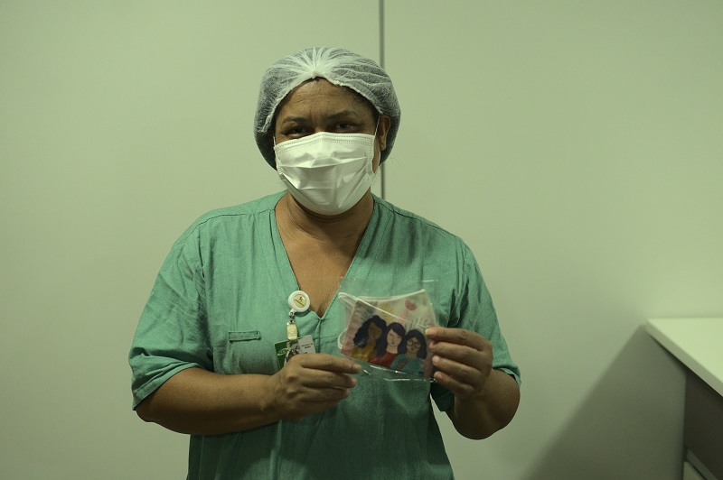 Juntamente com as máscaras foi entregue um cartão com uma mensagem para as mulheres.
