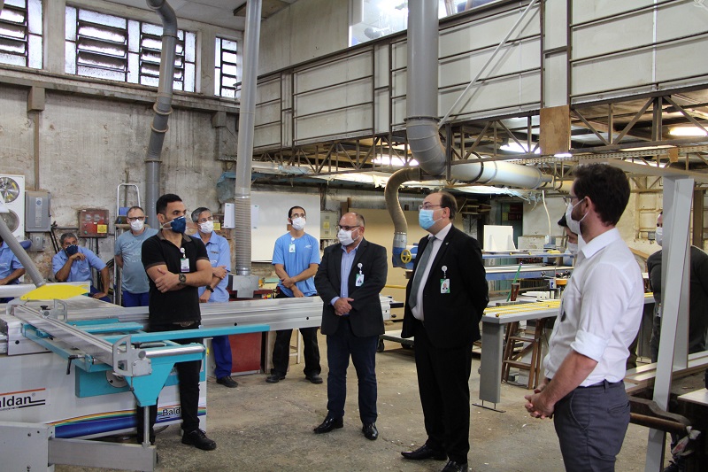 Em visita à Serralheria do Hospital Conceição (HNSC) na manhã desta quarta-feira, 31 de março, os diretores do GHC Cláudio Oliveira e Moises Prevedello agradeceram aos funcionários da Manutenção pelo trabalho desempenhado durante a pandemia de Covid-19.