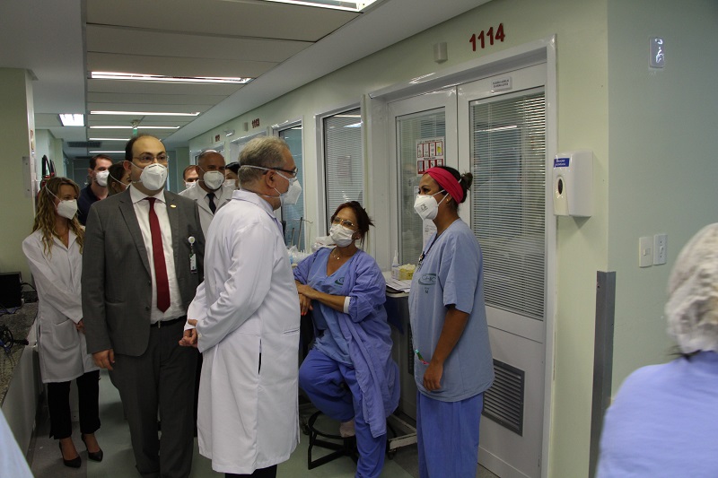Ao final, Marcelo Queiroga fez uma saudação para o corpo clínico e gerências do GHC, agradecendo o que os profissionais da instituição têm feito pelos gaúchos. Ele explanou que tem como incumbência do Presidente da República implementar o maior programa de vacinação do mundo. “É um legado que queremos deixar para a sociedade”, disse.