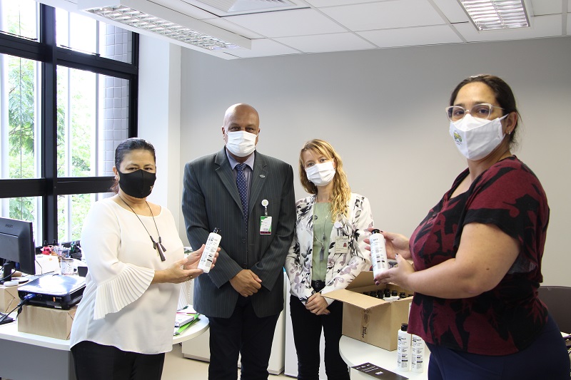 O Grupo Hospitalar Conceição recebeu na tarde desta terça-feira, 13 de abril, a doação de 180 higienizadores para mãos com ação virobactericida, da empresa de produtos químicos About You. O produto passará por uma análise prévia no GHC antes de ser distribuído no Hospital Conceição. A entrega foi recebida pelo gerente de Apoio do hospital, Élcio Carvalho, e entregue pelas representantes da empresa a advogada Luciana Seabra da Rocha e a administradora Lorena Pedrollo da Cunda.