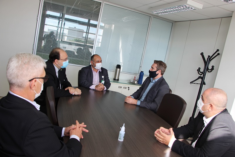 O prefeito de Ijuí, Andrei Cossetin, junto dos secretários de Desenvolvimento Econômico, Luiz Schirmann, e o adjunto, Francisco Noronha, fez uma visita de cortesia ao Grupo Hospitalar Conceição na manhã desta quinta-feira, 15 de abril. Recebido pelo diretor-presidente do GHC, Cláudio Oliveira, e o diretor administrativo e financeiro, Moises Prevedello, o grupo de gestores veio conhecer a instituição e tomar conhecimento dos convênios que a Gerência de Ensino e Pesquisa (GEP/GHC) possui que possibilitam campos de estágio.