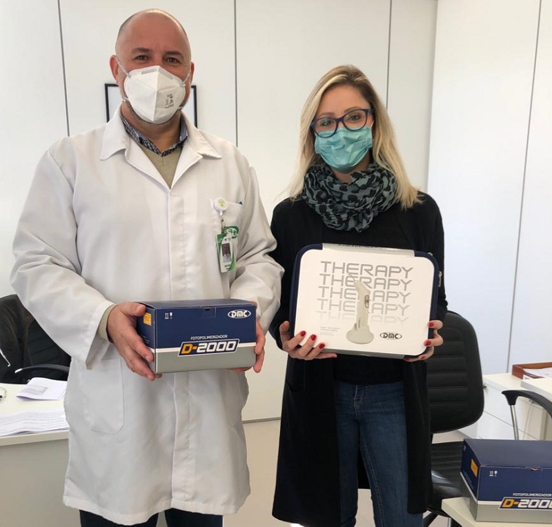 A gerente de Ensino e Pesquisa do Grupo Hospitalar Conceição, Bruna Donida, realizou a entrega de aparelhos de lasers para o gerente de Internação do Hospital Conceição, Rafael Ribeiro, nessa terça-feira, 20 de julho. Ao todo, foram adquiridos três equipamentos por meio de contratos de contrapartida, sendo um Laser DMC Therapy EC com ILIB e dois Laser D –2000, para o Serviço de Estomaterapia.