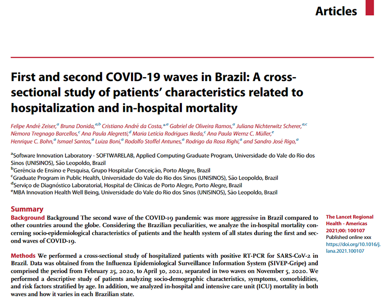 Em 1º de novembro, a gerente de Ensino e Pesquisa do GHC, Bruna Donida, teve um artigo de sua coautoria publicado na revista The Lancet Regional Health – Americas, do grupo britânico The Lancet. O artigo é fruto de um projeto de pesquisa que envolve a Unisinos e grandes hospitais gaúchos, entre eles o Grupo Hospitalar Conceição.