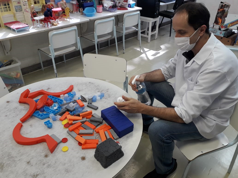 Foram retomados recentemente os atendimentos presenciais na sala da Recreação Terapêutica do Hospital Criança Conceição (HCC). Desde o início da pandemia, visando contribuir com a estratégia de contenção da propagação da Covid-19, o responsável pelo serviço, psicopedagogo Sérgio Dório, continuou prestando os atendimentos junto ao leito dos pacientes.
