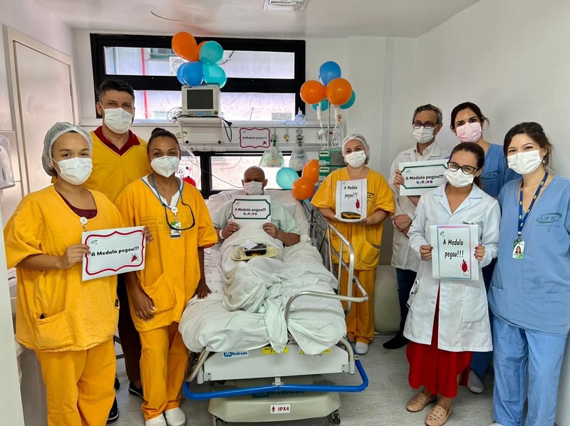 A equipe é formada por médicos, enfermeiros, farmacêuticos, nutricionistas, fisioterapeutas, psicologia, odontologia e serviço social, e, com o apoio administrativo das gerências, pudemos realizar este transplante, já visando a estrutura que está sendo construída no novo Centro de Hematologia e Oncologia, com maior capacidade.