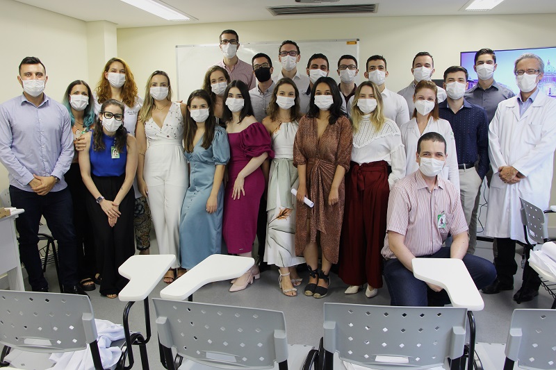 Foi realizada na manhã dessa quarta-feira, 23 de fevereiro, a solenidade de formatura de 23 médicos residentes da Medicina Interna no Hospital Conceição (HNSC). Os profissionais receberam o agradecimento e a homenagem dos seus preceptores Lana Catani, coordenadora do Serviço de Medicina Interna do HNSC, Eduardo Fernandes, supervisor do Programa de Residência Médica do HNSC, e Winston Benjamin. Além disso, participou da solenidade a técnica de enfermagem Ananda França, funcionária homenageada pelos formandos. A turma, reconhecida nas palavras de seus preceptores como "a turma da pandemia", atuou diretamente no enfretamento aos casos de Covid-19.