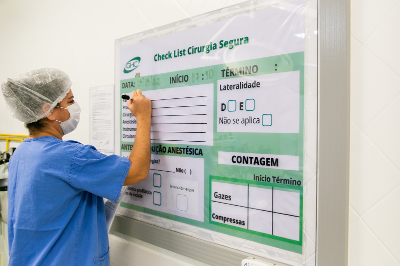 Com o objetivo de reforçar as recomendações da Organização Mundial da Saúde (OMS) e do Ministério da Saúde para cirurgia segura, o Bloco Cirúrgico do Hospital Cristo Redentor, em conjunto com a Gestão de Risco Assistencial HCR, vem implementando o preenchimento do Checklist, período do Time Out (antes da incisão cirúrgica), em placa visível em sala cirúrgica.