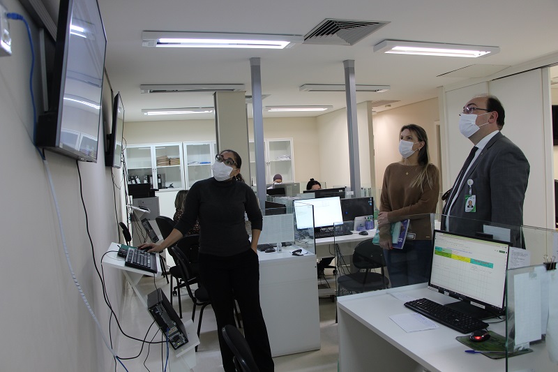 Após a reunião, no Centro Administrativo do GHC, a Diretoria acompanhou a parlamentar em uma visita ao Núcleo Interno de Regulação de Leitos do Hospital Conceição.