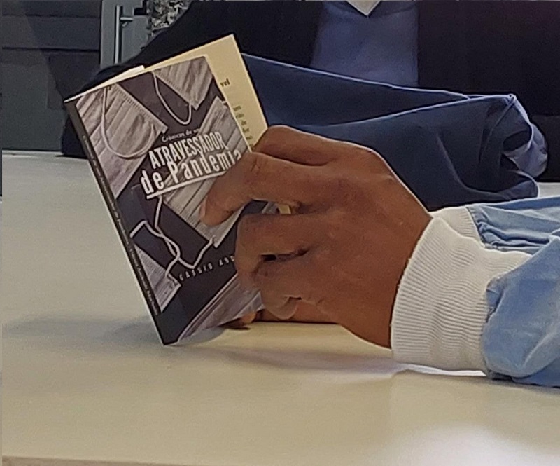 Logo após, houve um momento de leitura compartilhada das crônicas da obra. As escolhidas abordavam vivências relacionadas ao inicio da pandemia e as adaptações necessárias, a passagem do tempo pandêmico, medo, contágio, luto e esperança. Segundo afirmaram os usuários, encontro foi oportuno, uma vez que possibilitou, além de debate e encaminhamentos relacionados a vacinação e outros cuidados, a lembrança de experiências individuais e o contato com o autor, uma figura muitas vezes distante do alcance do público.
