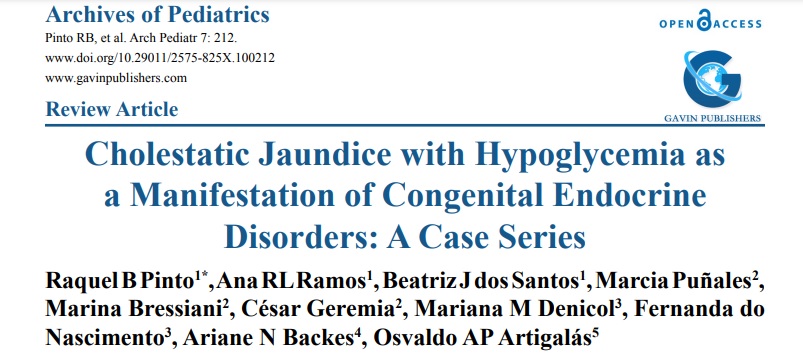 A equipe de Pediatria do Hospital Criança Conceição (HCC), liderada pela médica pediatra especializada em Gastroenterologia Pediátrica Raquel Borges Pinto, teve o estudo "Icterícia Colestática com Hipoglicemia como Manifestação de Distúrbios Endócrinos Congênitos: Uma Série de Casos" publicado na revista internacional Archives of Pediatrics.