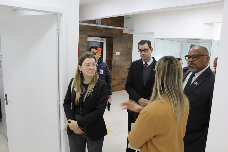 Após a assinatura, a gerente Bruna Donida conduziu uma vista da equipe da universidade pela sede da Escola GHC.