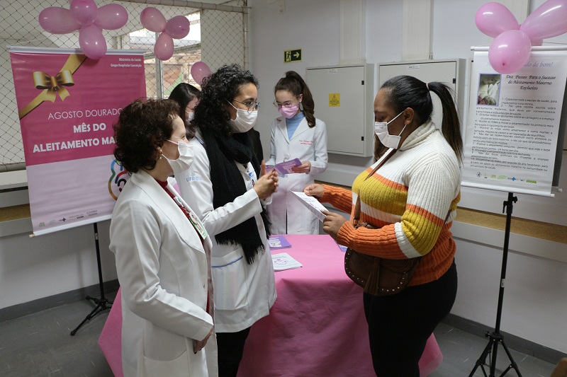 Na manhã desta quarta-feira, 10 de agosto, as residentes dos programas Atenção Materno-Infantil e Obstetrícia e Enfermagem Obstétrica deram início à Banca da Amamentação nos hospitais Conceição e Fêmina. A ação, que vai até as 15h, tem como propósito oferecer orientações sobre a amamentação para as usuárias e seus familiares e integra a programação de atividades do Agosto Dourado, Mês da Amamentação. Durante o dia, serão distribuídos fôlderes sobre o tema.