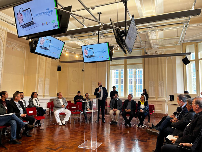 O diretor-presidente do Grupo Hospitalar Conceição, Cláudio Oliveira, participou na manhã desta segunda-feira, 12 de setembro, no Farol Santander, do lançamento do edital de chamamento para empresas realizarem teste de soluções inovadoras com foco na operacionalização de telemedicina em urgência e emergência para pronto atendimento virtual 24 horas.