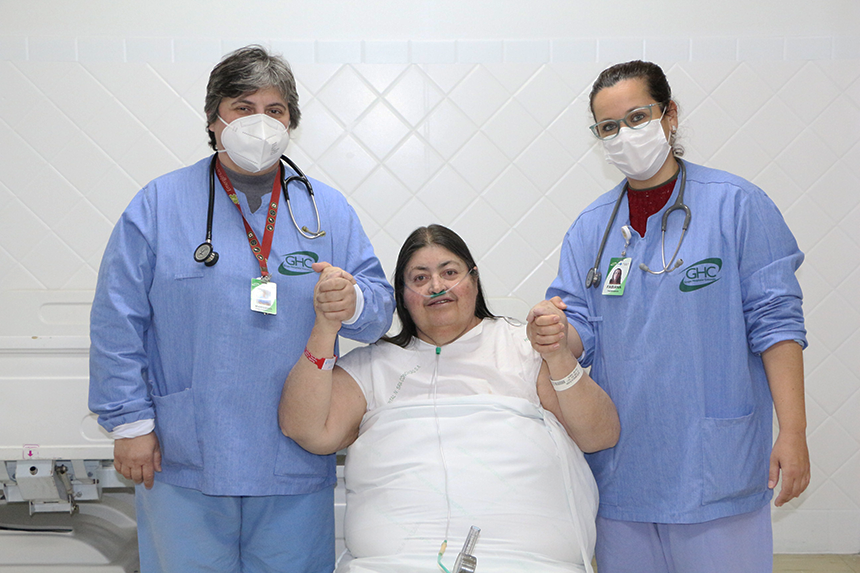 Na última sexta-feira, dia 23 de setembro, uma paciente do Serviço de Fisioterapia do Hospital Conceição recebeu alta após 36 dias de tratamento para recuperar a habilidade de caminhar, depois de ser internada devido a uma restrição respiratória e motora, acamada e necessitando de suporte ventilatório.
