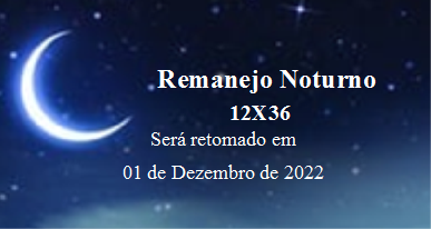 A Gerência de Recursos Humanos do Grupo Hospitalar Conceição informa que, a partir do dia 1º de dezembro, será retomado o Remanejo Noturno (12x36). O remanejo consiste na movimentação de empregados do GHC, entre turnos e/ou setores. Essa movimentação ocorre dentro dos limites das normativas institucionais e legislação vigente, não alterando cargo, especialidade, regime de trabalho ou carga horária mensal contratada.