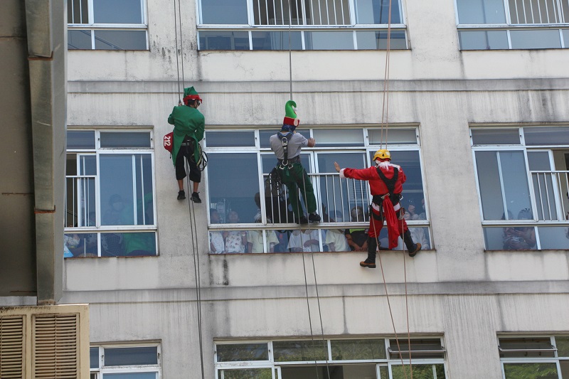 Na terça-feira, dia 13 a empresa Eco Alpinismo promoveu uma descida de rapel com voluntários vestidos de Papai Noel e seus ajudantes, logo em seguida vários super-heróis visitaram as crianças entregando brinquedos.