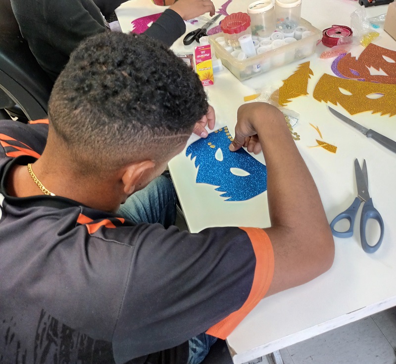 Nos dias 15 e 17 de fevereiro, o Caps AD III – Passo a Passo realizou uma oficina de máscaras para que usuários de saúde, profissionais e residentes multiprofissionais em saúde confeccionassem máscaras com o tema de Carnaval.