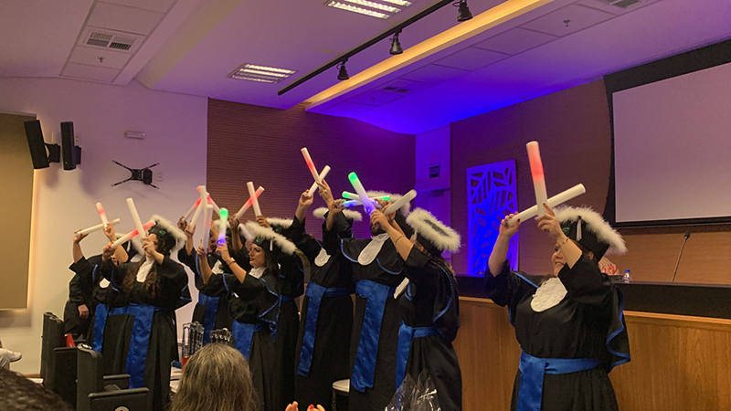 "A formatura da primeira turma do Curso Superior de Tecnologia em Gestão Hospitalar foi sem dúvida emocionante. Ver a concretização de todo o trabalho duro que é iniciar uma faculdade dentro de um hospital e, ainda por cima, em meio a uma pandemia é muito gratificante. Poder transformar vidas por meio do ensino é o que nos move. Fico feliz de poder fazer parte desse momento e agradeço imensamente aqueles que tornaram esse dia possível. Desejo sucesso aos novos gestores hospitalares", saúda a gerente de Ensino e Pesquisa do GHC, Bruna Donida.