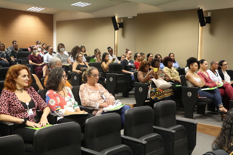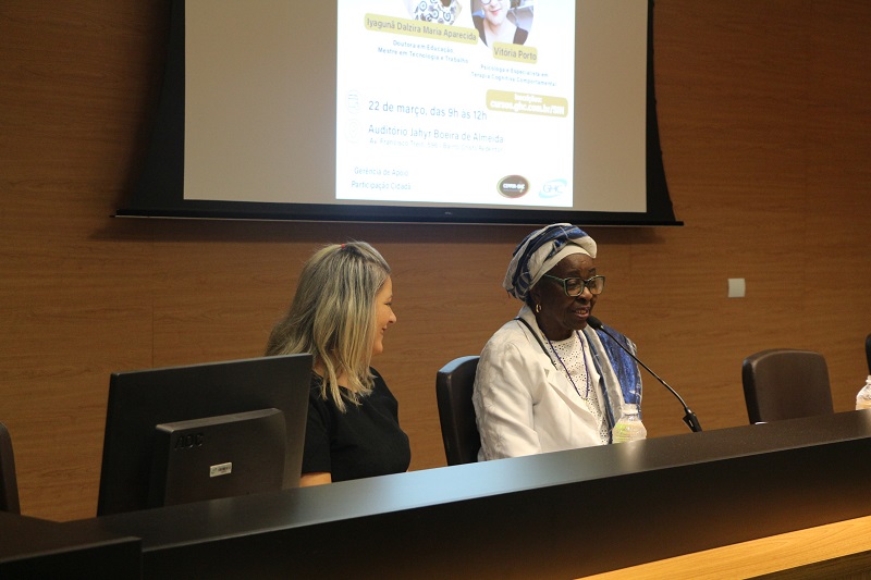 O público assistiu às palestras da doutora em educação e mestre em tecnologia e trabalho Iyaguña Dalzira Maria Aparecida e da psicóloga e especialista em terapia cognitivo-comportamental Vitória Porto. A primeira palestrante discutiu o racismo no Brasil pelos recortes de gênero, raça e religiões de matriz africana, enquanto a segunda, apresentou os desafios no atendimento de mulheres vítimas de violência doméstica e explicou o “ciclo de violência”.