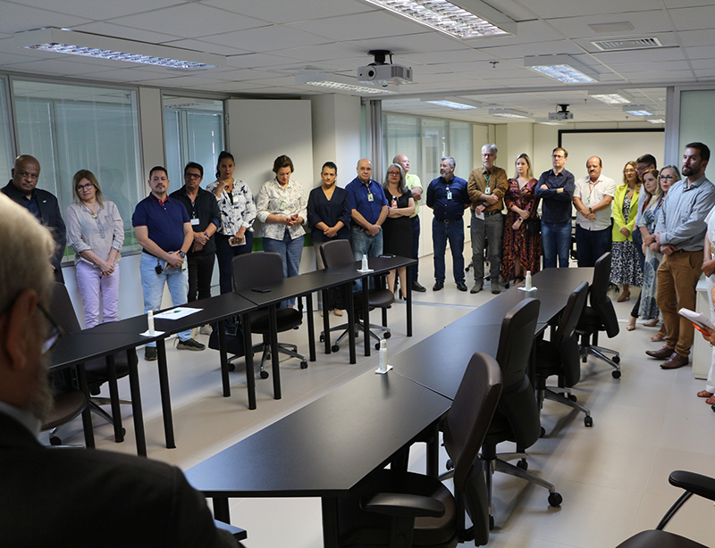 Após quase quatro anos à frente da presidência do Grupo Hospitalar Conceição, o administrador Cláudio Oliveira, se despediu nesta terça-feira, 4 de abril, da instituição, com uma reunião com os gerentes e a Diretoria do GHC, onde agradeceu pelo empenho e dedicação durante o período de gestão. O secretário municipal de Saúde de Porto Alegre, Mauro Sparta, também participou do encontro.