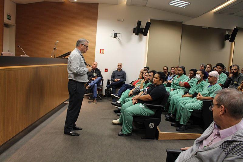 Durante a reunião com os trabalhadores, o presidente informou que já estão em andamento as negociações com os representantes sindicais para a elaboração do Novo Plano de Carreira.