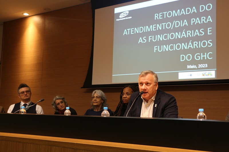A fim de restabelecer uma Política de Saúde do Trabalhador que atenda às necessidades de saúde e segurança dos trabalhadores em consonância com os princípios e diretrizes do Sistema Único de Saúde (SUS), o Grupo Hospitalar Conceição retoma a partir desta segunda-feira, 29 de maio, o atendimento/dia das funcionárias e funcionários da instituição. O anúncio foi feito durante ato realizado no Auditório Jahyr Boeira de Almeida, com a presença da Diretoria do GHC, demais gestores, trabalhadores e representantes de sindicatos e entidades ligadas às categorias funcionais do Grupo. As consultas/dia reabrem no Ambulatório do Hospital Conceição nas especialidades de Clínica Médica, Ginecologia e Traumatologia.
