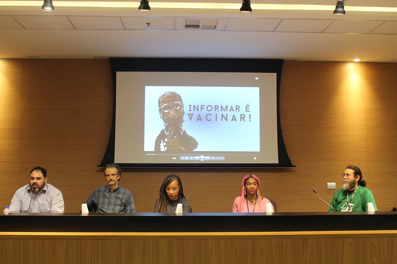 A abertura do evento contou com a participação dos gestores do GHC que reforçaram a importância das campanhas de vacinação. O coordenador pedagógico da Escola José César de Mesquita, Wagner Moura, salientou que é fundamental fomentarmos o tema por meio da arte e cultura. “Os jovens são os protagonistas neste processo de combate a fake news”, explica Moura.
