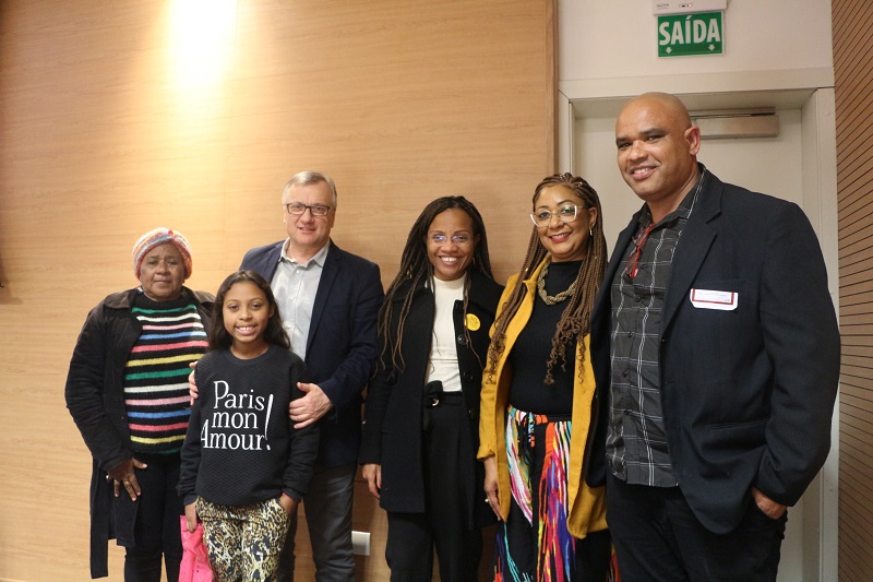 Na mesa de abertura do evento, estavam presentes a diretora do GHC, Quelen Alves da Silva, a presidente da Comissão Especial de Políticas de Promoção da Igualdade Racial do GHC (Ceppir), Andréia Lucia Pereira, a assessora da Diretoria do GHC Lisiane Vieira dos Santos, a gerente de Saúde Comunitária do GHC, Gerusa Bittencourt, e o diretor-presidente do GHC, Gilberto Barichello.