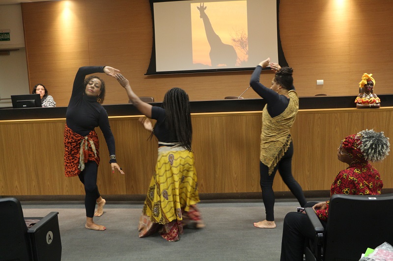 A apresentação do grupo de dança Afro Omudua encerrou as atrações do período da manhã. E as atividades do período da tarde iniciaram com a apresentação musical da Gerente de Saúde Comunitária, Gerusa Bittencourt.