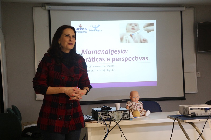 Pensando na temática deste ano da Semana Mundial de Aleitamento Materno, "Apoie a Amamentação: faça a diferença para mães e pais que trabalham", foi ministrada a palestra "Mamanalgesia: práticas e perspectivas", com a enfermeira do Departamento de Enfermagem Materno-Infantil da Escola de Enfermagem da Universidade Federal do Rio Grande do Sul Alessandra Vaccari, e também foi apresentado pela nutricionista do Núcleo de Promoção em Saúde da Secretária Municipal de Saúde de Porto Alegre Cintia Costa o projeto "Amamentar é tri".