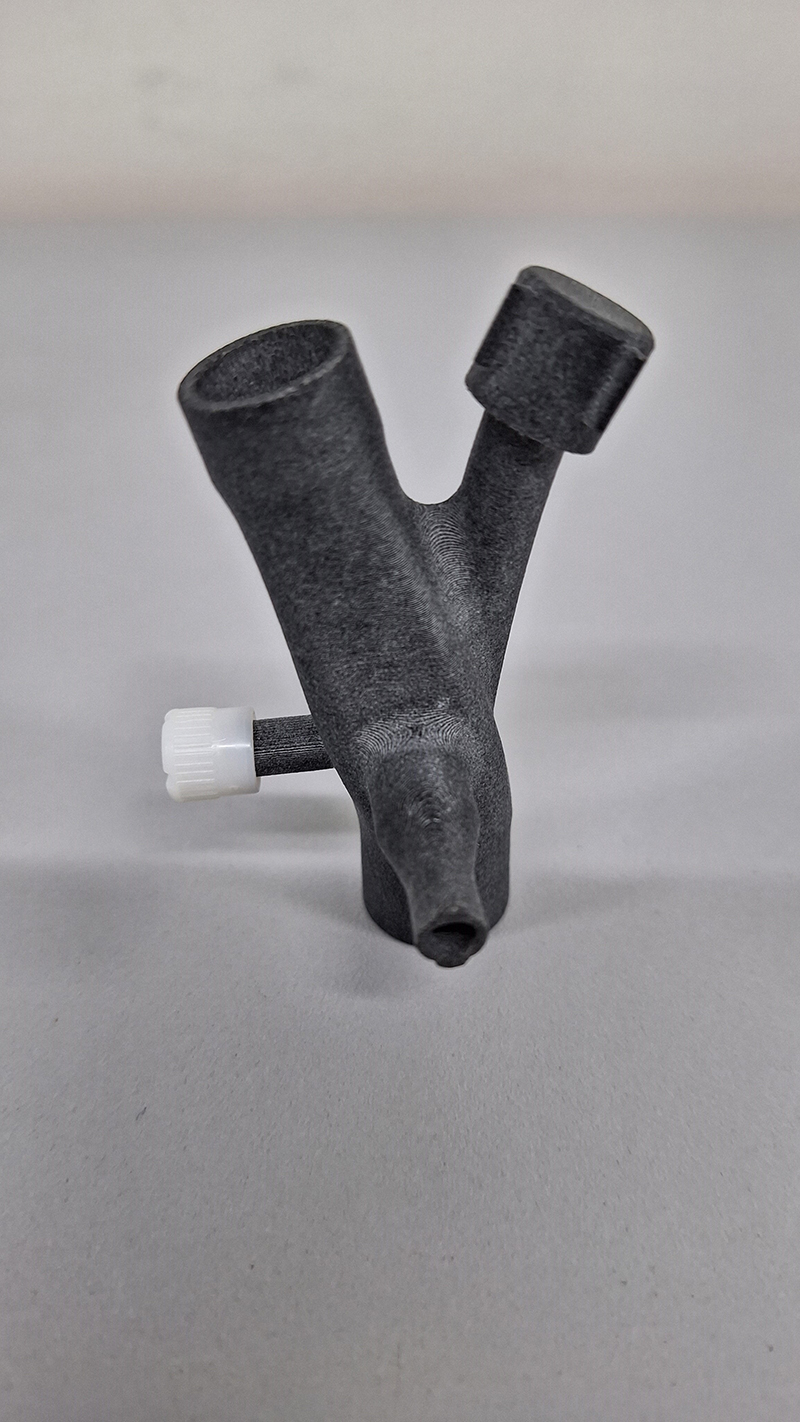 Os pesquisadores do Grupo Hospitalar Conceição criaram um dispositivo para o uso no sistema de entubação endotraqueal. "Trata-se de um espaçador entre o tubo endotraqueal do paciente e o ventilador mecânico. Ele funciona como uma peça entre o tubo e o ventilador", explica o coordenador de Pesquisa da Escola GHC, Fernando Anschau. O novo modelo criado apresenta diversas novidades quando comparado aos já existentes, como um fluxo de ar entre o respirador e o paciente mais laminar, diminuindo a turbulência, permite a aspiração de secreções em sistema fechado e administração eficiente de medicação em aerossol, num valor inferior aos aparelhos disponíveis no mercado atualmente. A coordenadora do Mestrado Profissional do GHC, Luciane Kopittke, enfatiza que "os conectores similares ficaram escassos no mercado no início da pandemia devido à demanda e, ainda, passaram a custar quase 10 vezes mais do que antes". A nova peça desenvolvida deve ter um valor ainda inferior aos antes praticados, além de ser uma peça que pode ser esterilizada e reutilizada (autoclavável), sem a necessidade de descarte.