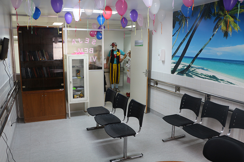 O local é de uso livre, contando com livros, jogos, tv e um quadro para recados. Em média, a Onco-hemato tem 50 pacientes internados.