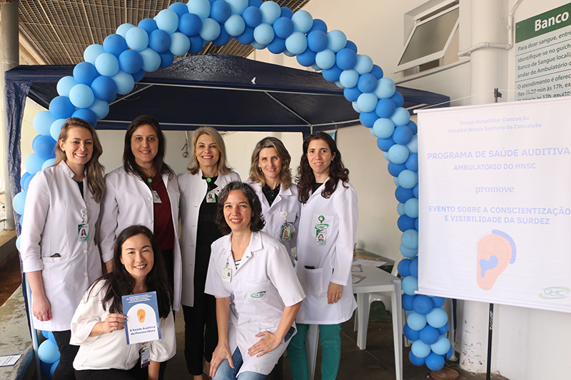 Nesta sexta-feira, 10 de novembro, em alusão ao Dia de Prevenção à Surdez, está sendo realizado pela Fonoaudiologia, Otorrinolaringologia e Serviço Social o evento sobre Saúde Auditiva do Idoso, no pátio em frente ao Hospital Conceição. O objetivo do evento é divulgar informações acerca da perda auditiva decorrente do processo de envelhecimento.