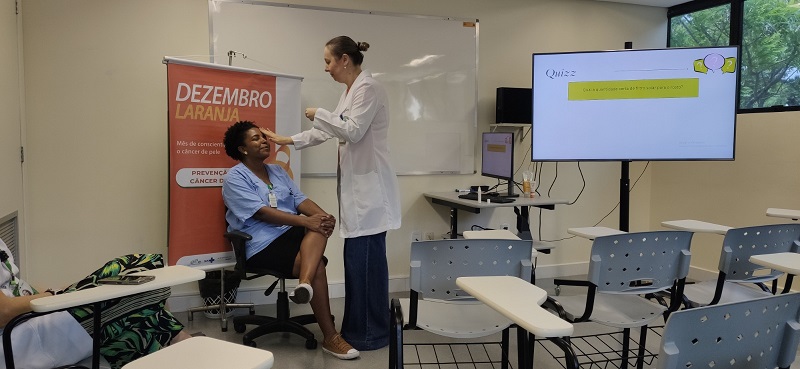 “Nosso papel como profissionais da saúde é educar sobre proteção solar”, destaca dra Clarice. Ela lembra que no período de janeiro a outubro/23 foram diagnosticados no GHC 252 casos de câncer de pele com indicação de 1º tratamento conforme o relatório do relógio do câncer.
