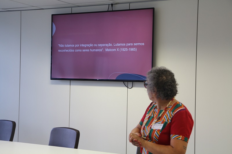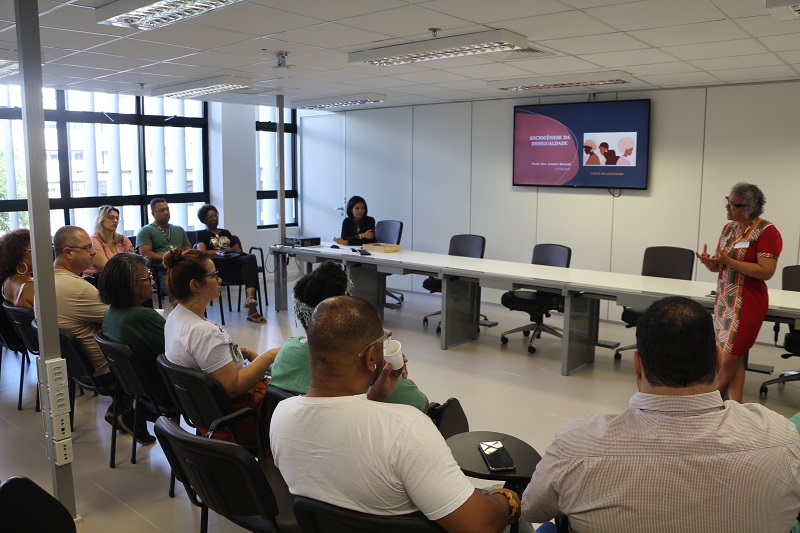 A palestra desenrola-se ao longo da manhã, e tem o objetivo de atualizar os trabalhadores sobre informações referente aos programas previstos no Ministério da Igualdade Racial (MIR) e como essas políticas públicas podem ser implementadas no GHC. A roda de conversa foi ministrada pela assessora do MIR Leonice Mourad, que abordou o tema “Sociogênese da Desigualdade”.