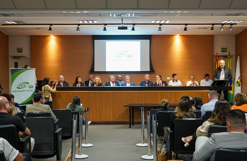 Além da assinatura do contrato, o ato marcou também a posse da Comissão de Segurança Alimentar e Nutricional do GHC, presidida pela nutricionista Marília Garcez, que, em sua fala, destacou que a preocupação com a alimentação deve vir desde a produção do alimento até chegar ao prato dos mais de 10 mil usuários, residentes, pacientes e acompanhantes de pacientes que são servidos diariamente no Grupo Hospitalar Conceição.