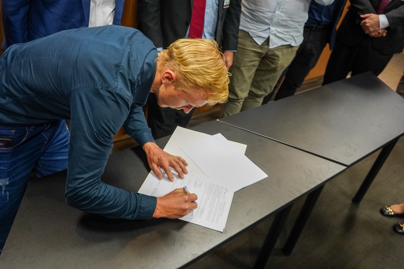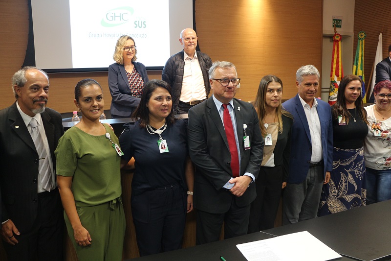 O ato, realizado no Auditório Jahyr Boeira de Almeida, no Centro Administrativo GHC, contou com a presença do ministro do Desenvolvimento Agrário e Agricultura Familiar, Paulo Teixeira, do diretor-presidente da Companhia Nacional de Abastecimento, Edegar Pretto, do diretor-presidente do GHC, Gilberto Barichello, do diretor administrativo e financeiro do GHC, João Motta, do diretor de Atenção à Saúde do GHC, Luís Antônio Benvegnú, da deputada federal Maria do Rosário, representando no evento a Câmara dos Deputados, o deputado federal Elvino Bohn Gass, os deputados estaduais Zé Nunes e Miguel Rosetto, a nutricionista do GHC Marília Garcez, o conselheiro de Administração do GHC Guilherme Cassel, os cooperativados Bruno Engel Justin e Gervásio Pluscinski e, representando na assinatura as cooperativas, Sidnei Justin Witts.
