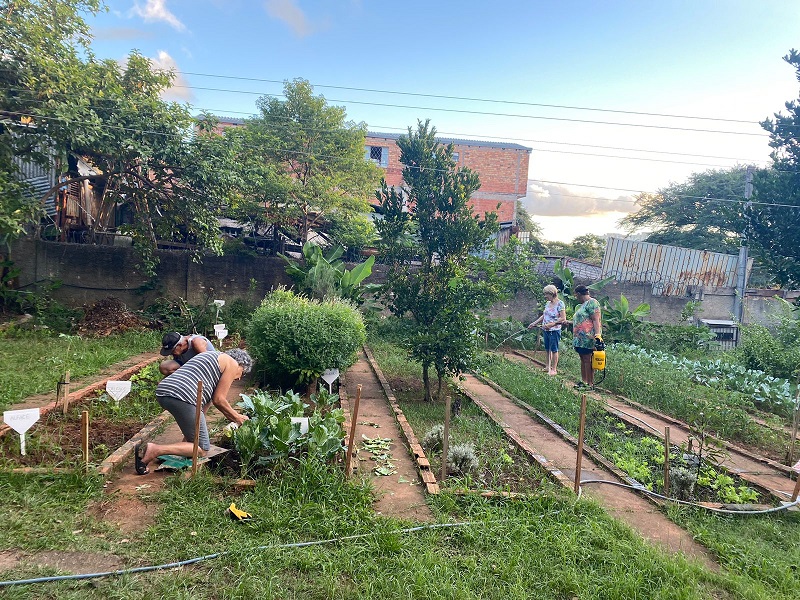 A Horta Alegria do Costinha foi a anfitriã do Projeto de Extensão da UFRGS e Grupo Hospitalar Conceição na 4ª Oficina, que abordou o tema “Soluções Ecológicas para o Controle de Doenças e Pragas”. A atividade contou com mais de 50 participantes entre trabalhadores, usuários da Unidade de Saúde Costa e Silva, comunidade, alunos da graduação e doutorando em Agronomia, além da professora coordenadora do curso de Agronomia da UFRGS, Magnólia Silva.
