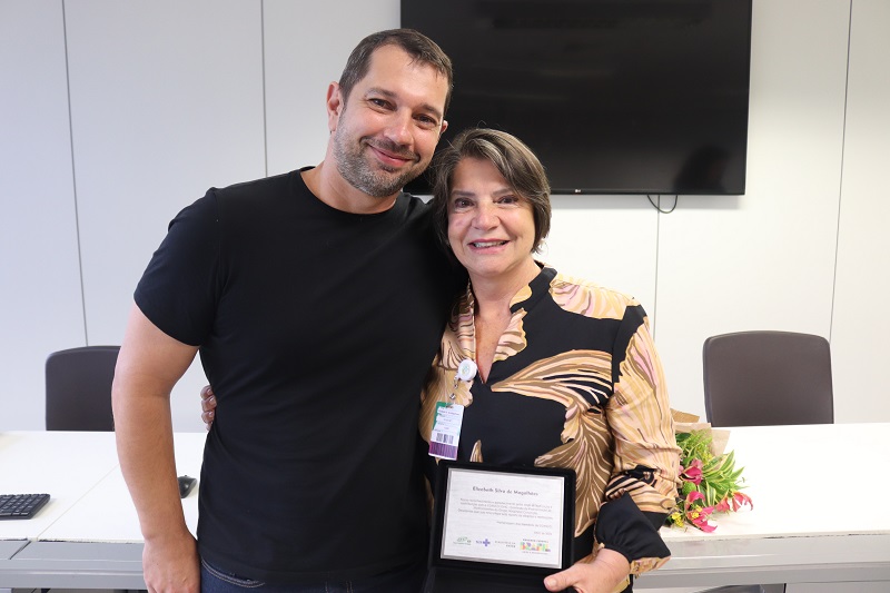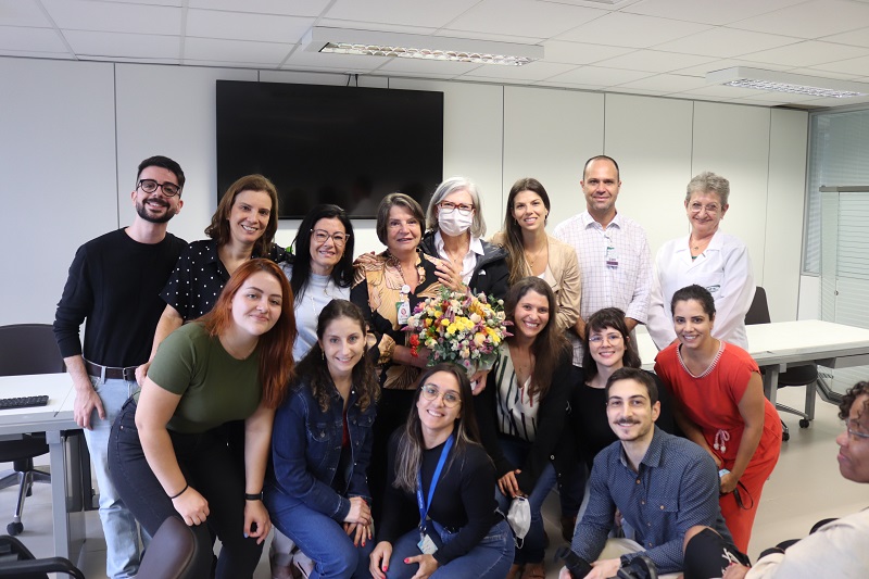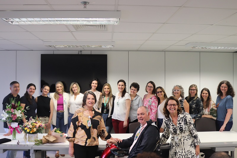 Ocorreu, nesta quinta-feira, 11 de abril, no Centro Administrativo GHC, uma homenagem à farmacêutica Elizabeth Silva de Magalhães, admitida em 15 de dezembro de 1977, que irá se desligar no próximo mês de maio, após 47 anos de serviços prestados. A saudação foi promovida pela Gerência de Interunidades de Serviços Auxiliares de Diagnóstico e Tratamento (GISADT) e pela Comissão de Medicamentos (Comedi).