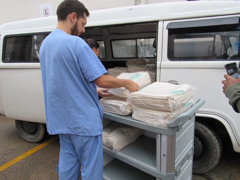 Nesta sexta-feira, 26 de abril, a Cooperativa Justa Trama entregou no Hospital Criança Conceição a primeira remessa de lençóis de algodão orgânico para o GHC. A entrega do material é fruto do contrato firmado entre o GHC e a Cooperativa no dia 26 de março último, com o objetivo de fornecimento de peças de enxovais hospitalares a partir de algodão orgânico agroecológico.